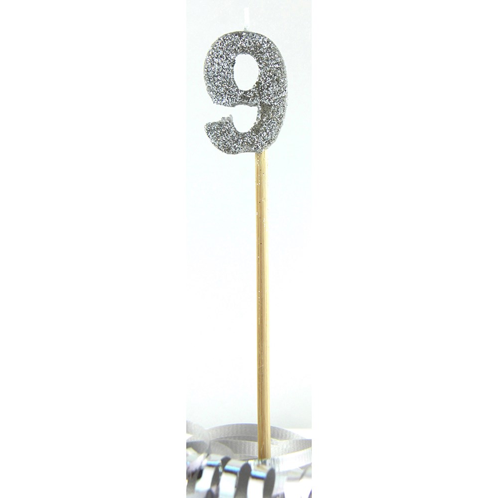 Alpen Candle Long Stick Glitter No. 9 Silver