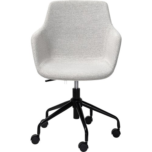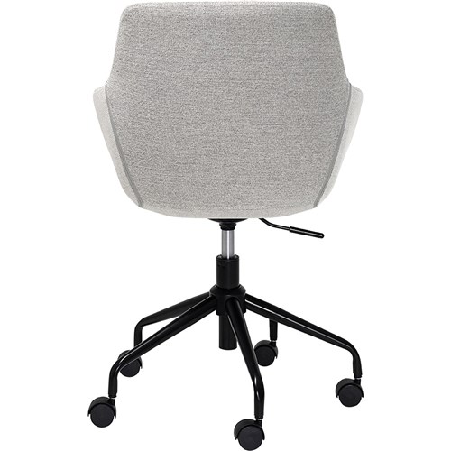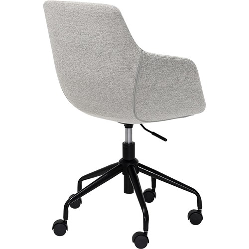• Modern design with neutral grey fabric upholstery, 5-star powder-coated steel base.