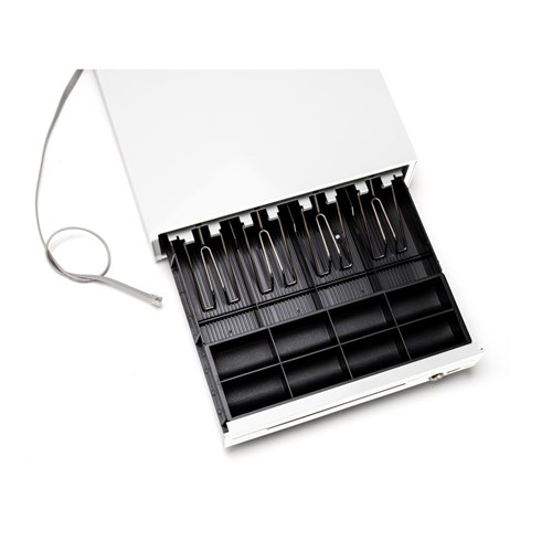 • The cash drawer is a gloss white colour.