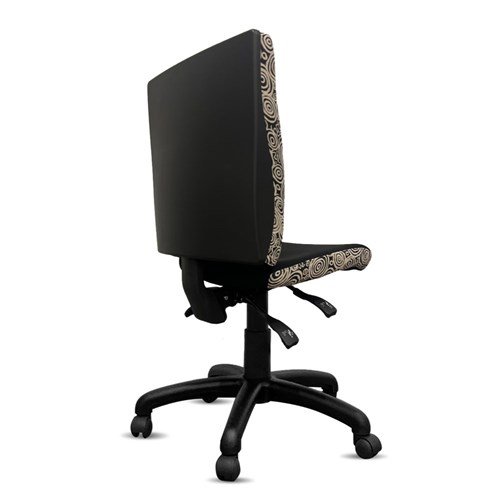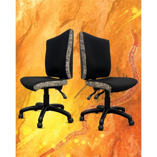 • A unique commercial fabrics designed by Nelly Patterson (Indigenous Artist) combined with K2 Black Fabric to upholster the chair.