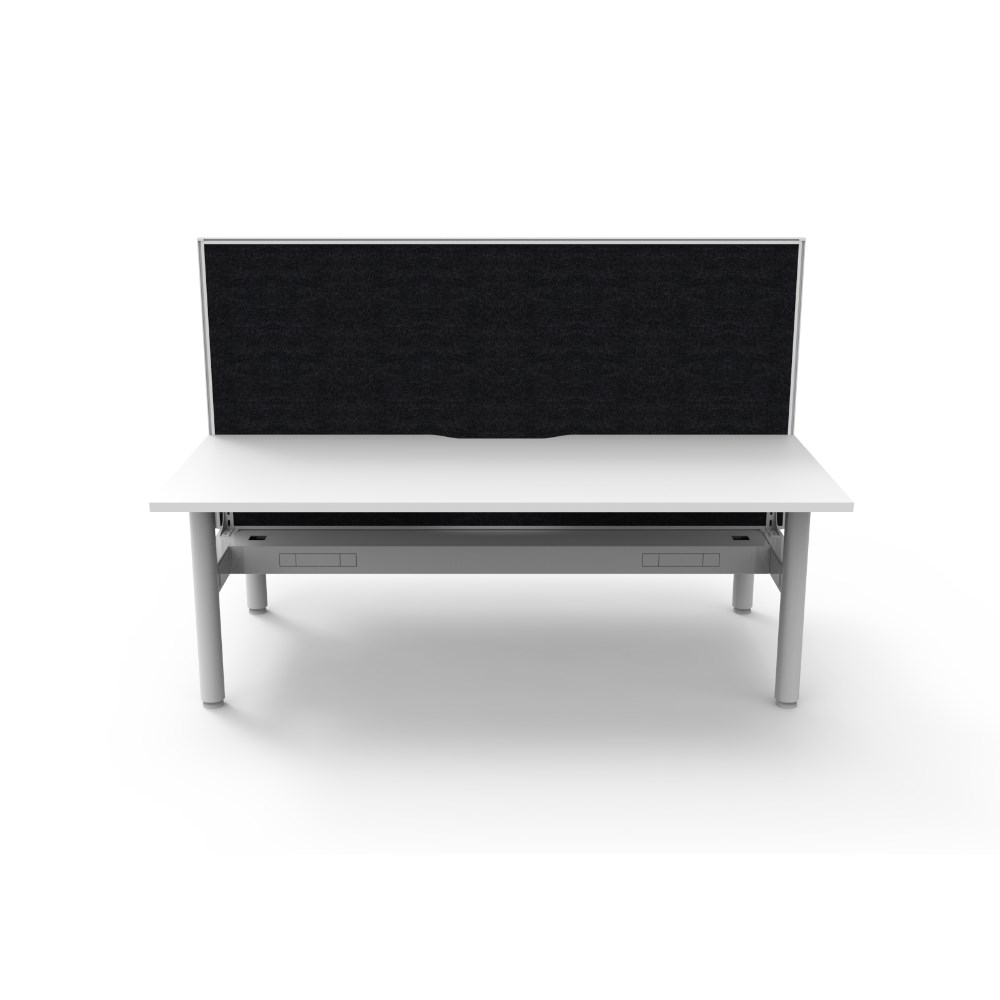 • Natural White top White Satin frame. Double sided workstation with screen and cable tray..