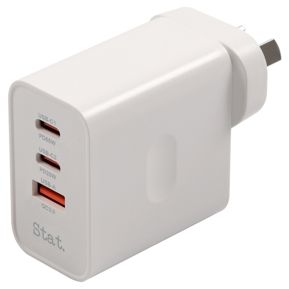 Stat 65W GaN USB-A And USB-C Fast Wall Charger White