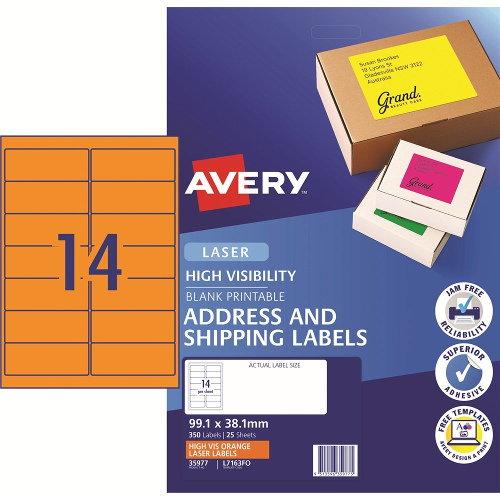 Avery High Visibility Shipping Laser Labels Orange L7163FO 99.1x38.1mm 14UP 350 Labels