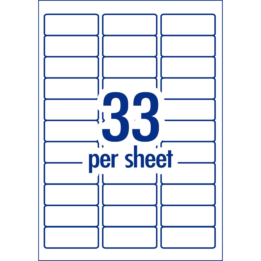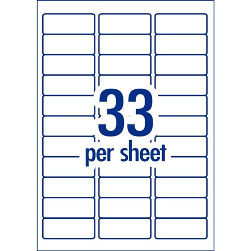 • Size: 64 x 24.3mm, 3300 labels, 100 sheets, 33 labels per sheet (33UP).