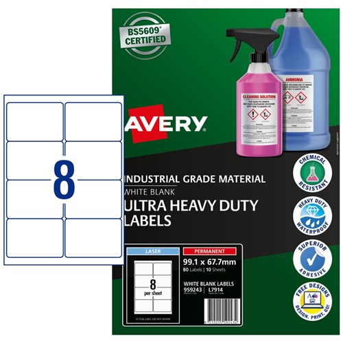 Avery Identification Laser Ultra Resistant White L7914 99.1x67.7mm 8UP 80 Labels