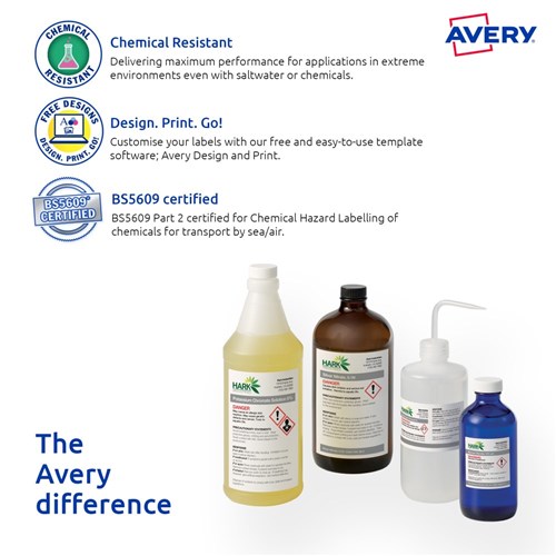 • Ultra-Resistant Labels are saltwater resistant and certified for GHS Chemical Labelling with permanent adhesive and engineered to take on harsh environments.