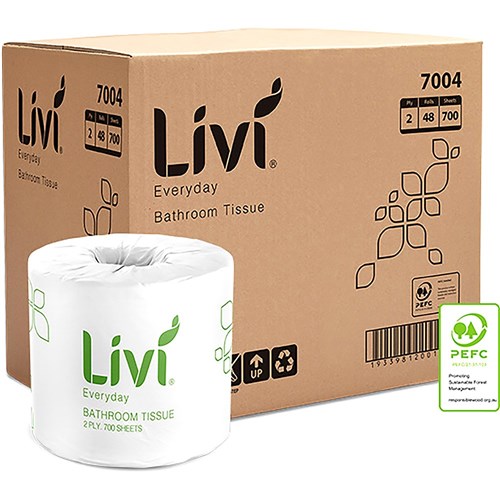 Livi Everyday Toilet Paper Rolls 2 Ply 700 Sheets Box Of 48