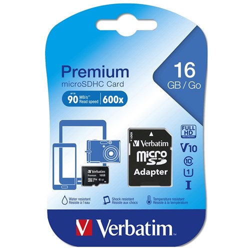 Verbatim Premium Micro SDHC Memory Card With Adapter Class 16GB Black